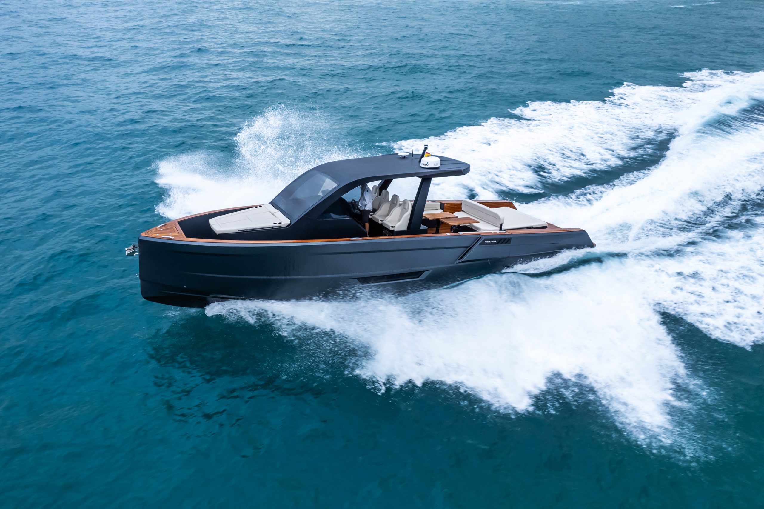 New MAXIM YACHTS line model MAX 43 COMFORT inboard version available in stock for immediate delivery. Combination of design, elegance and high performance with quality finishes. Ideal for daytime enjoyment with comfortable and spacious areas. With a bar cabinet in the cockpit and 2 large sunbeds at the bow and stern. Cabin model with 2 bedrooms (bow and stern) and spacious independent bathroom. Motors with integrated JOYSTICK. Capacity persons: 12 Fully equipped ready to sail! Water capacity: 300l Fuel capacity: 1250l Engine power: 2X440HP